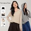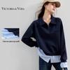 VICTORIA&VERA Women's Spliced Sleeve Round Neck Base Layer Top