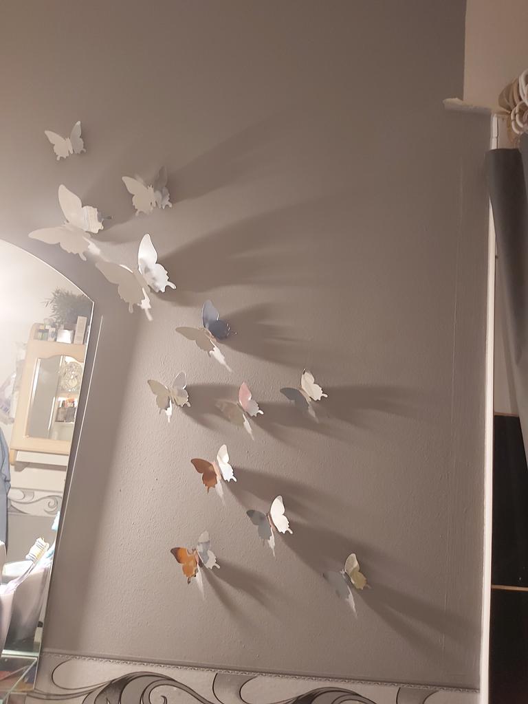 Nádherní ❣️ motýlci tří velikostí vypadající 4D. Bez problémů drží na zdi! Sladký, roztomilý, hravý :-) dodává místnosti živý vzhled.