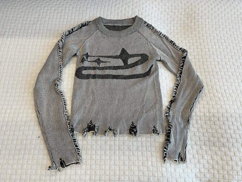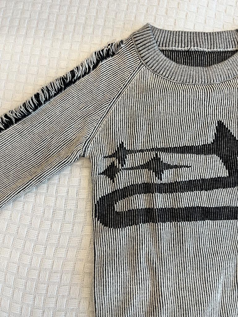 Weekeep Roztrhaný Vintage Svetr Harajuku Patchworkový Potisk Dlouhý Rukáv Svetry pro Ženy Podzim Zima Základní Pulovry Street Style