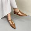 Johnature Retro lodičky s špičatou špičkou a páskem s přezkou, z pravé kůže, s měkkou podrážkou, všestranná dámská obuv