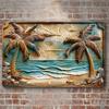 Tropical Palm Trees and Leaves wooden Sign, Round Wall Decor, Weather Resistant Door Hanger, Wreath Decor