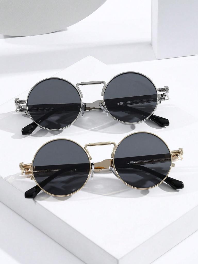 1/2 PC S Fashion Round Metal Frame Spring Decor Sunglasses For Outdoor Daily Life Shades Punk Vintage Eyewear Accessories.