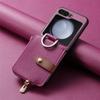 Prstenový kryt na telefon s držákem na karty pro Samsung Z Flip 6 5 4 3 Flip6 Flip5 Flip4 Flip3 5G Zipová peněženka PU kožený kryt