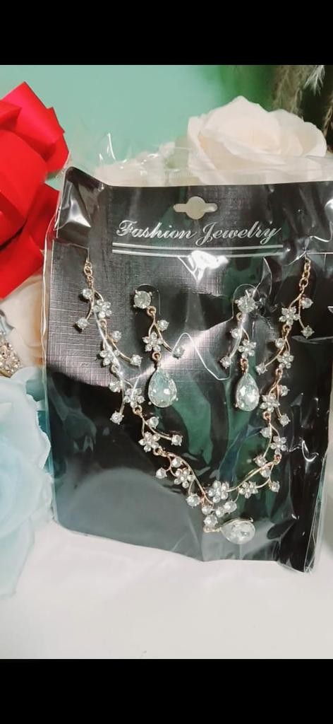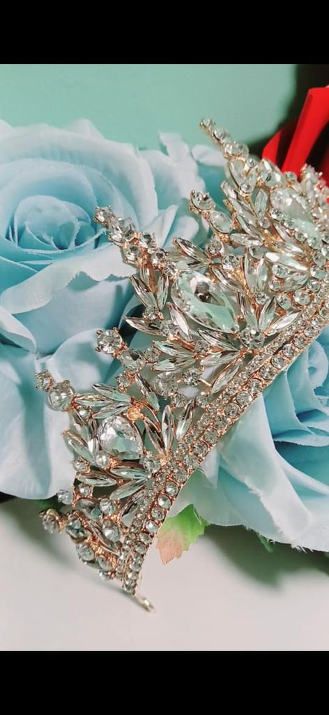 3 Pcs Princess Wedding Crown Jewelry Sets and Tiaras Green Pink Bride Necklace Earrings Set Girls Prom Birthday Accessory