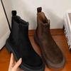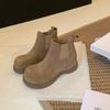 Cowhide version thick-soled inner height-increasing round-head Martin boots women's new retro matte leather versatile and thin Chelsea short boots