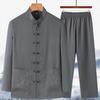 Letní oblek ve stylu Tang, oblek na ranní cvičení v čínském stylu, zapínání na knoflíky ve stylu talíře, atmosférická jednobarevná výšivka, dvoudílný oblek