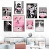 Black and Pink Toilet Posters Fashion Pink Woman Canvas Paintings And Prints HD Pictures For Washroom Bathroom Decor Frameless