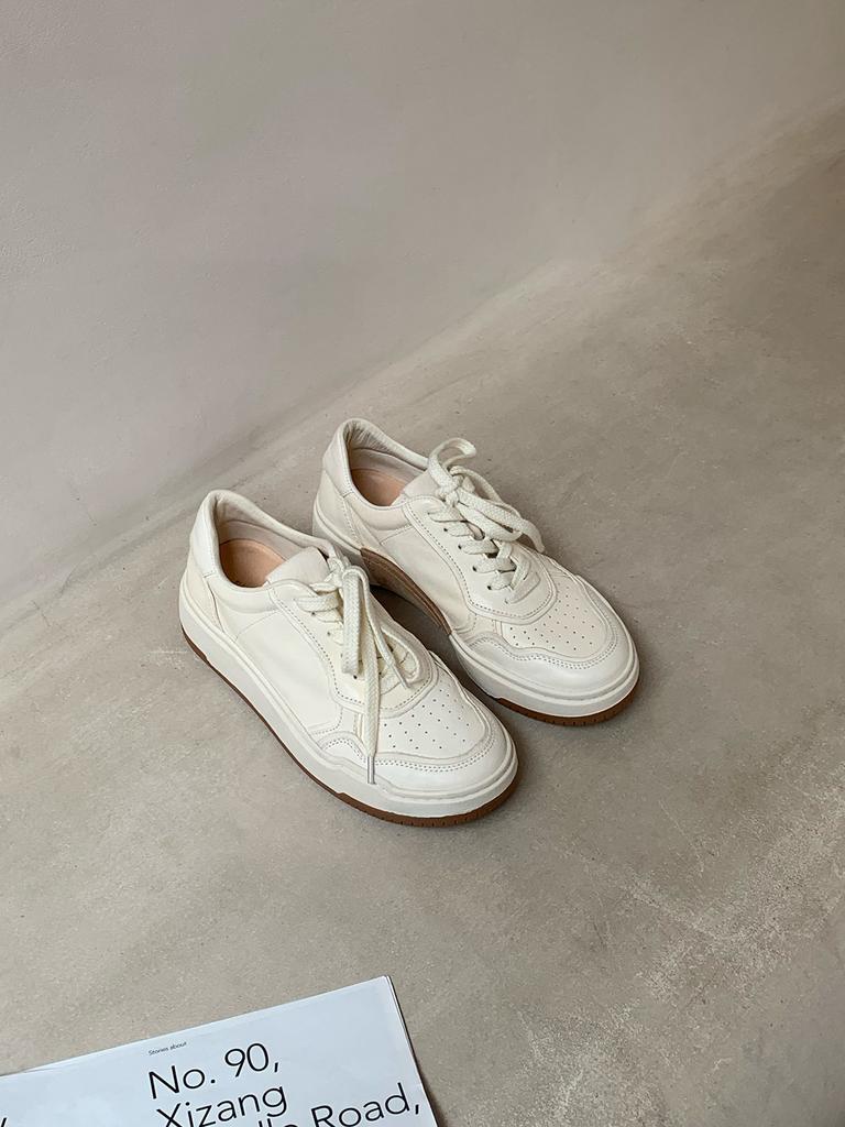 Grape mother has the same round head lace-up, breathable thick-soled versatile little white shoes for women, fashionable and comfortable sports a
