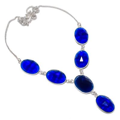 Safír(Simulované) Drahokamový náhrdelník ze sterlingového stříbra 925 18"