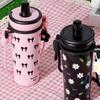 Large Capacity Straw Water Bottle Cherry Bowknot Plastic Sippy Cup Home/School