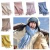 Korean Style Wool Tassel Scarves Solid Color Bear Shawl Fashion Winter Cashmere Scarf Girls