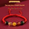 Cinnabar Five Gods of Wealth Bracelet - Luck-Changing Hand String with Purple Gold Sand Beads for Men and Women