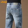 These JEEP men's straight-leg jeans are perfect for summer, crafted from a breathable blend including Tencel Lyocell and mulberry silk for slight elasticity and comfort. Featuring a washed finish, loose fit, and a classic zipper fly, they are both durable and stylish for daily wear or casual outings. The thin denim design ensures coolness, while the minimalist solid color and simple stitching offer a versatile look.
