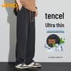 Experience ultimate comfort and style with JEEP Men's Ice Silk Tencel Straight Leg Jeans. Crafted from a blend of Lyocell, Polyester, Viscose, and Spandex, these loose-fit jeans offer high elasticity and a cool, breathable feel, perfect for summer. Featuring a lightweight design, straight leg cut, and a comfortable drawstring waist, they are ideal for daily wear or casual office settings.