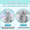 This plush elephant toy measures 30cm in height and features a short-pile PP cotton filling for softness and durability. It includes battery-powered or rechargeable options, making it suitable for interactive play and comforting use. The toy's color options include blue and beige, with various themed designs.