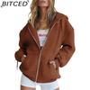 BITCED Unisex Fleece-Lined Hooded Sweatshirt Casual Cardigan with Zip-Up Front