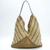New striped large-capacity straw bag casual black edge shoulder hand-woven bag seaside vacation beach bag