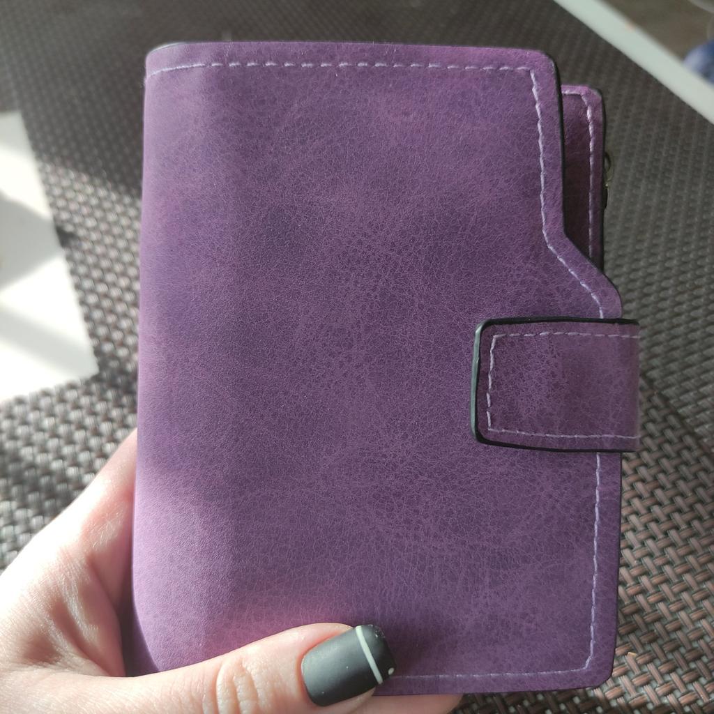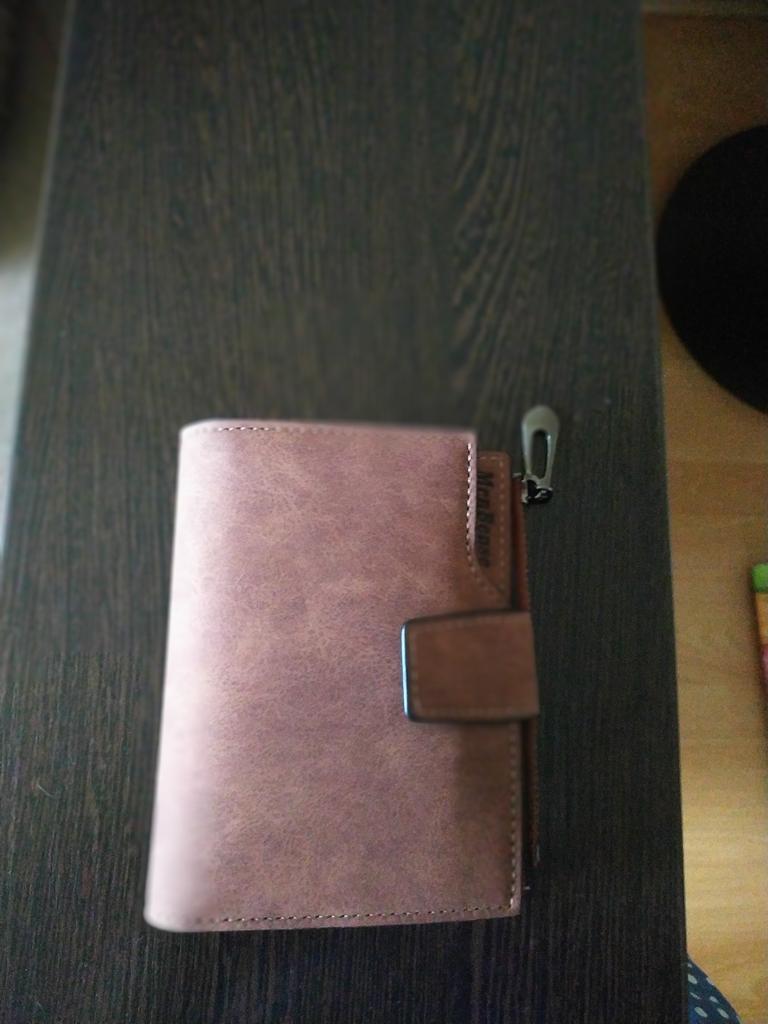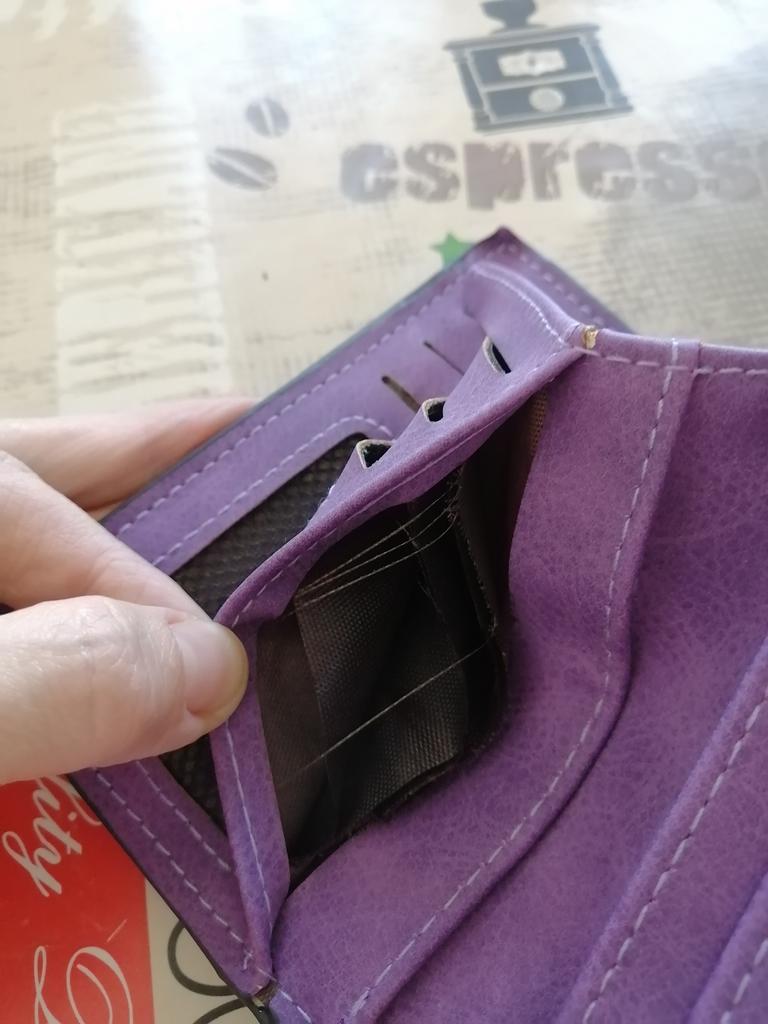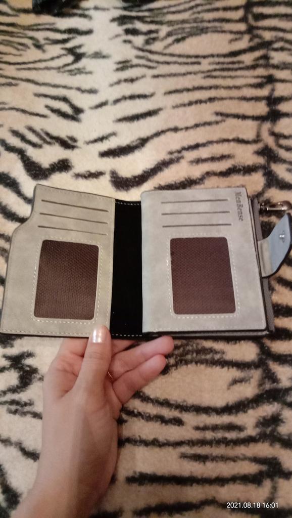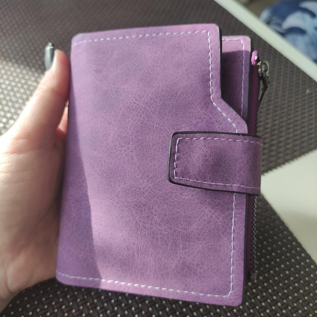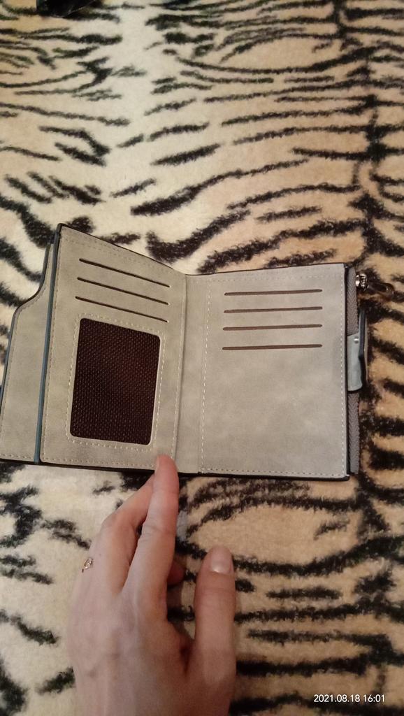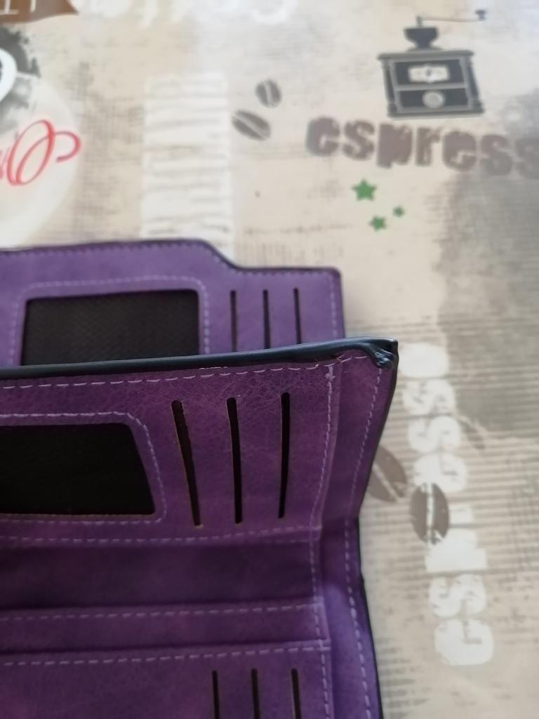 Cool roomy wallet. Delivered quickly, arrived securely packed. The fastener works, the seams are also good, the color is as in the photo. The only thing is that there is a small stain inside, but for me it is not a minus, it will still not be visible behind the cards. I am 100% satisfied with the order👍