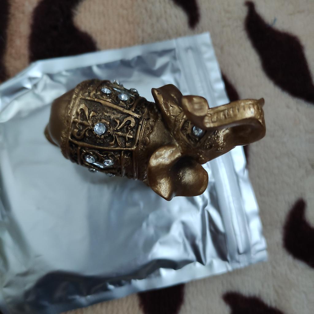 I order this baby elephant not for the first time, very beautiful baby elephant, heavy, with rhinestones, looks good, satisfied