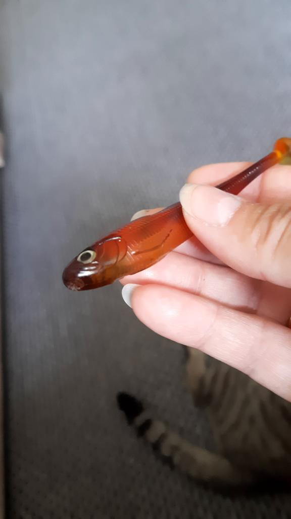Rubber fish are of poor quality. Eyes fall off quickly. Smell is a little strong chemical.