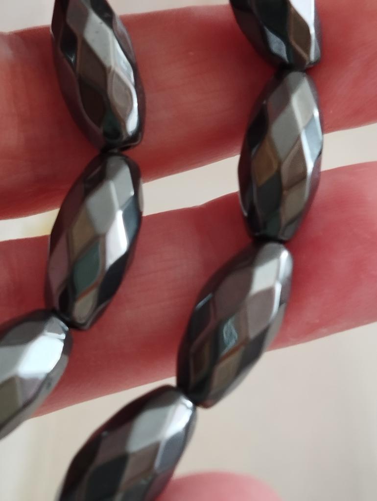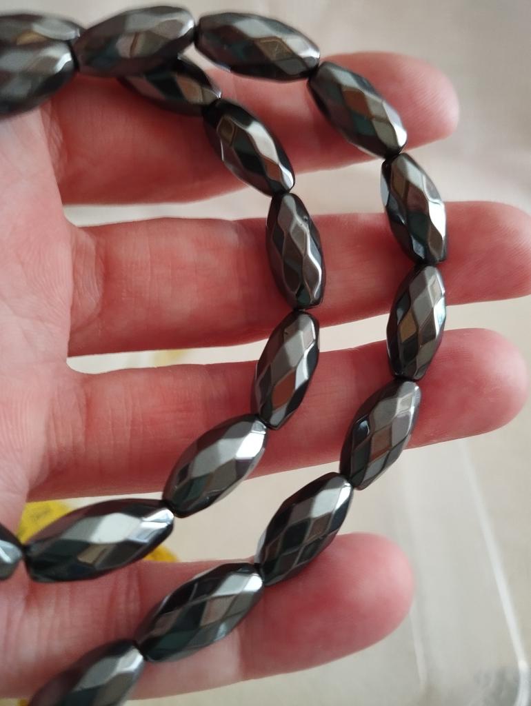 The beads are similar to hematite, but do not shine like it. And they are not magnetized. I donβt know: maybe there is non-magnetic hematite?