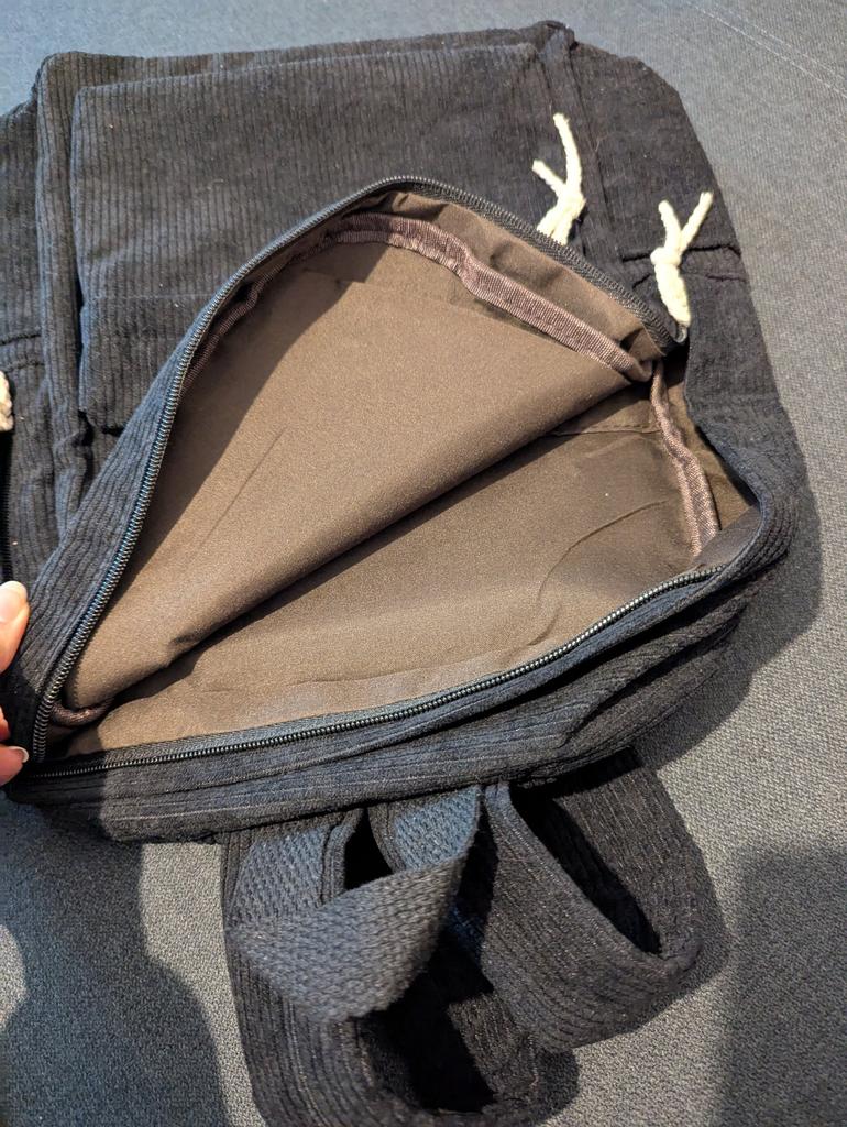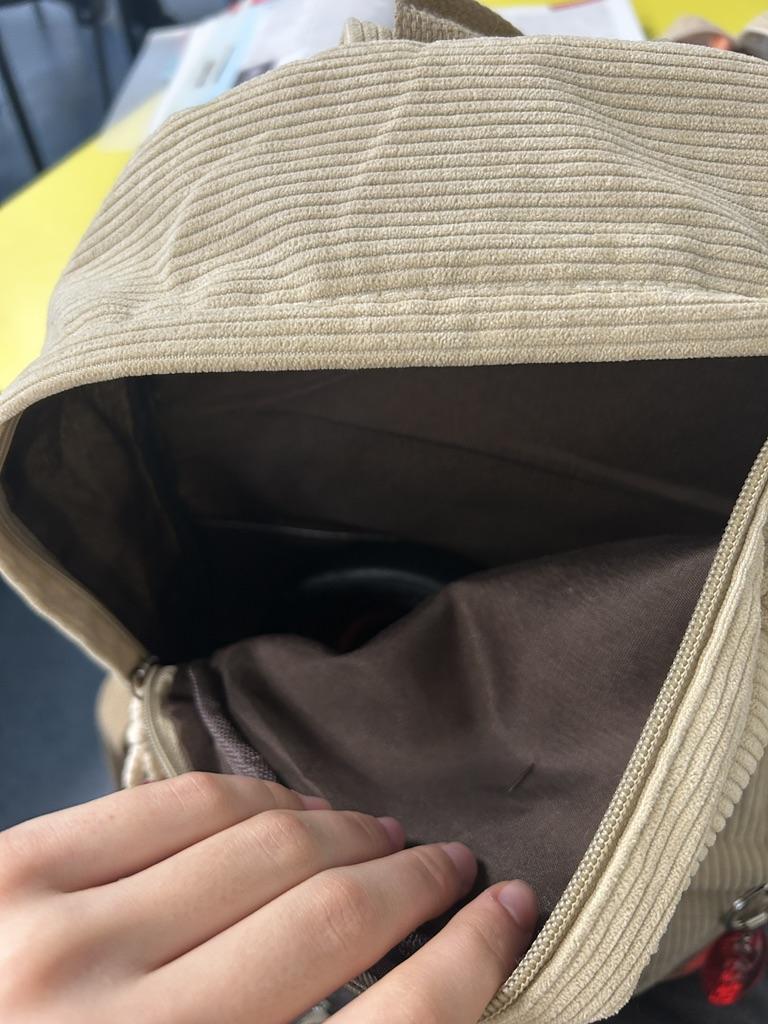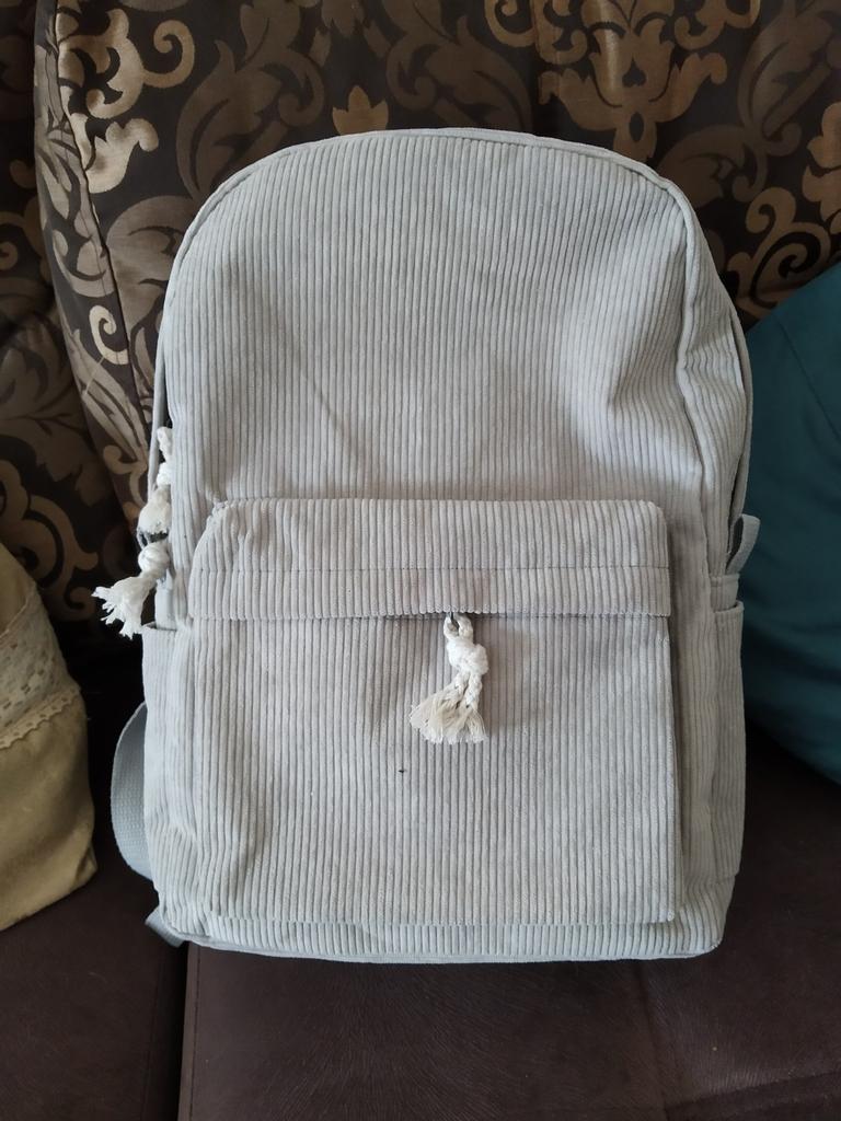 A little disappointed. There is some cardboard inside the backpack, you can't wash it because it will get wet! The threads come untied. The lining fabric disappointed, it doesn't really match the color, and it's unpleasant to the touch. There is an unpleasant smell. The lack of a second large pocket was also disappointing. For its price, it's okay, but if your budget is not very limited/unlimited, then it's 100% worth choosing something nicer and of better quality!!!