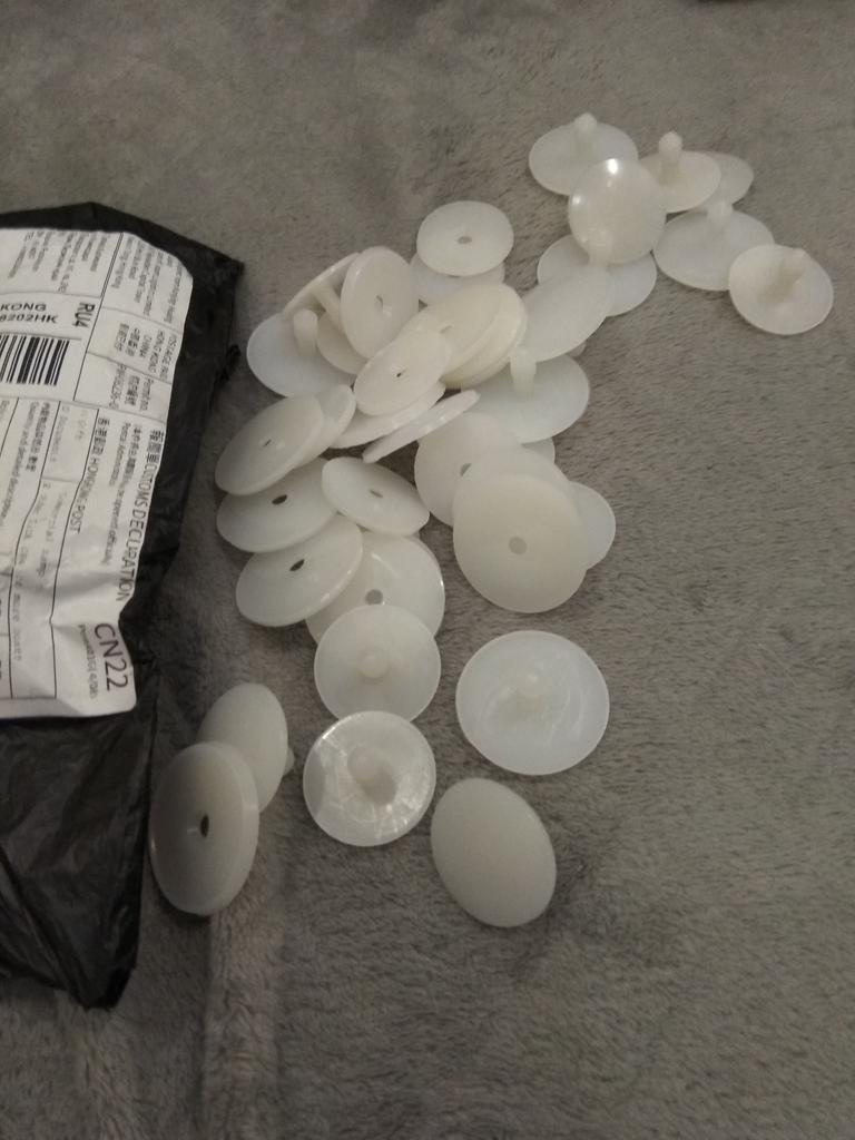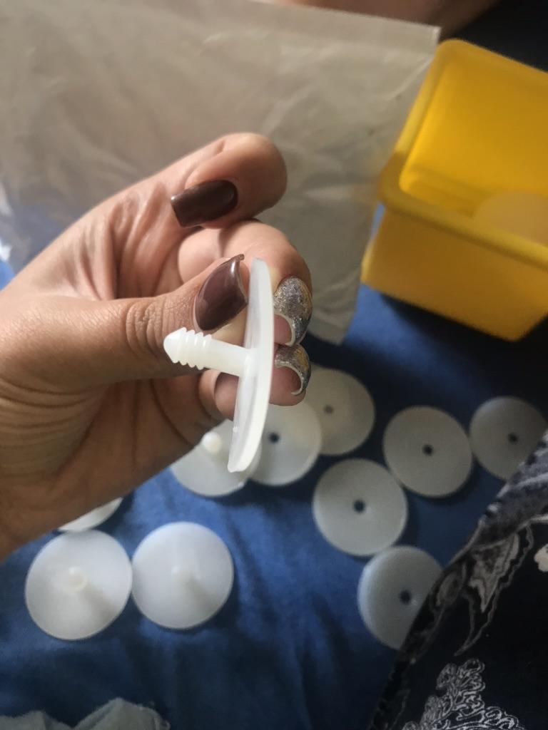 A lot of lack. Everything needs to be trimmed and cleaned. It will cling strongly to the thread, as it was taken for knitted toys from plush yarn. The disks are also not exactly equal.