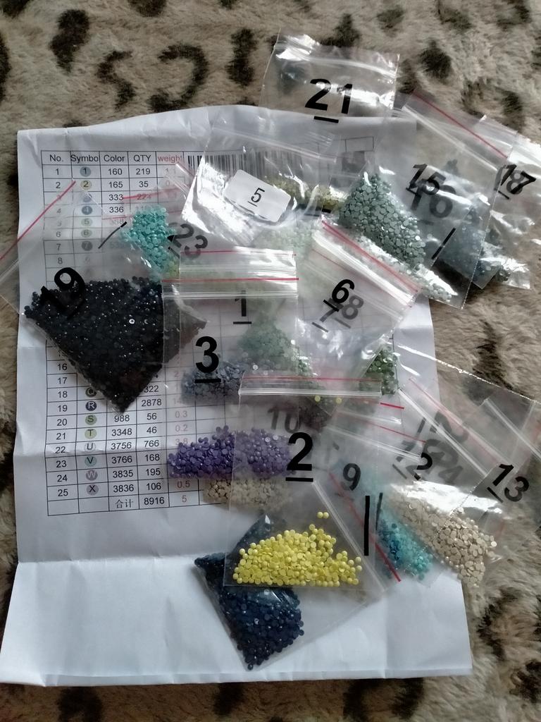 In order to avoid the lack of diamonds, please don't throw away the remaining diamonds after you put the corresponding symbols, put them in a small self-sealing bag in the package, and write the diamond number. After you have finished the whole plastering, you can throw away the extra diamonds, or you can keep it yourself, thank you!