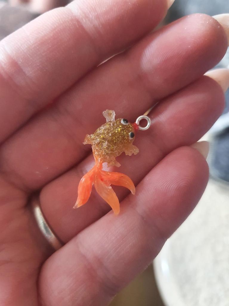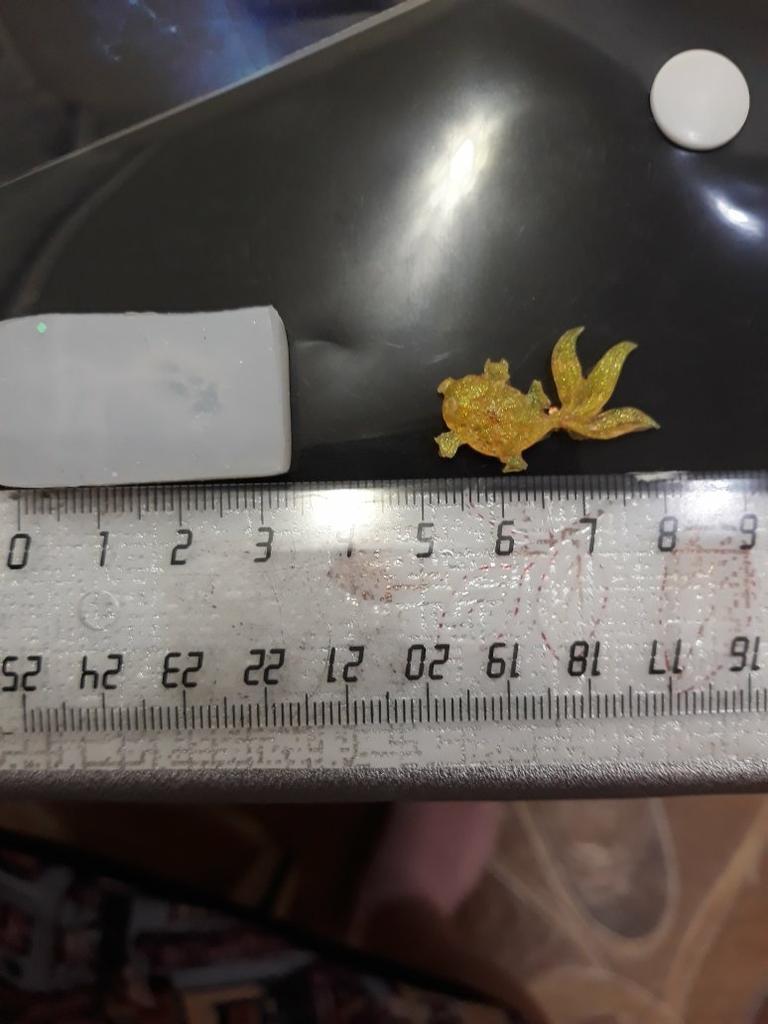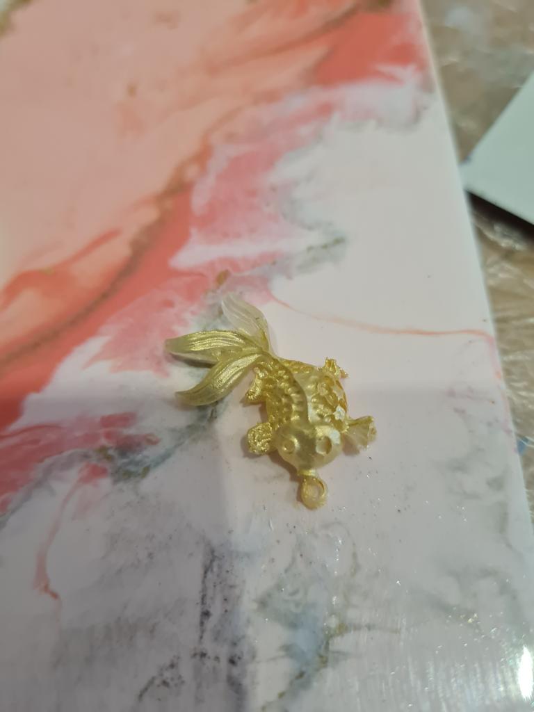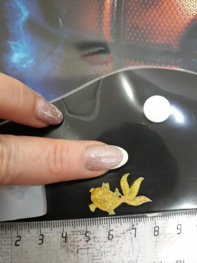 I was a little shocked when I saw the tiny little fish. I wanted small ones, but not quite so small. The whole shape is just under 3.5 cm in size, the fish is about 2.9 cm in size, just right for my project.