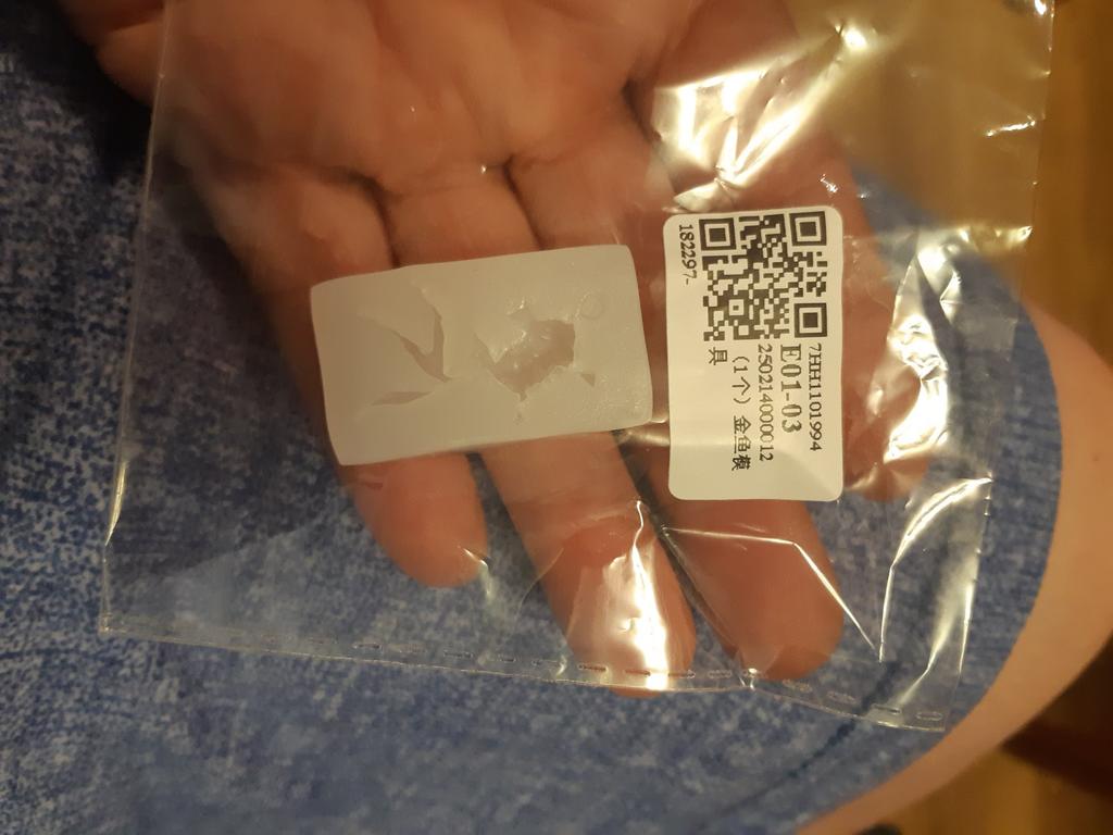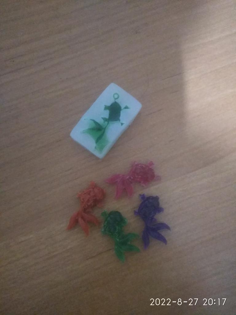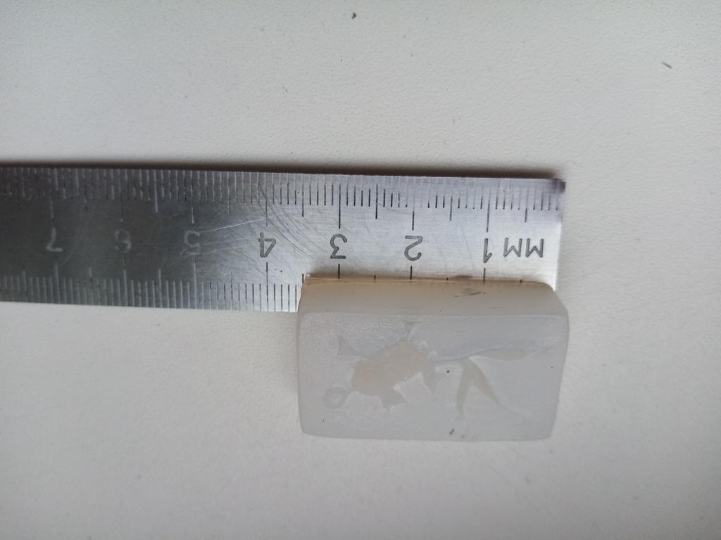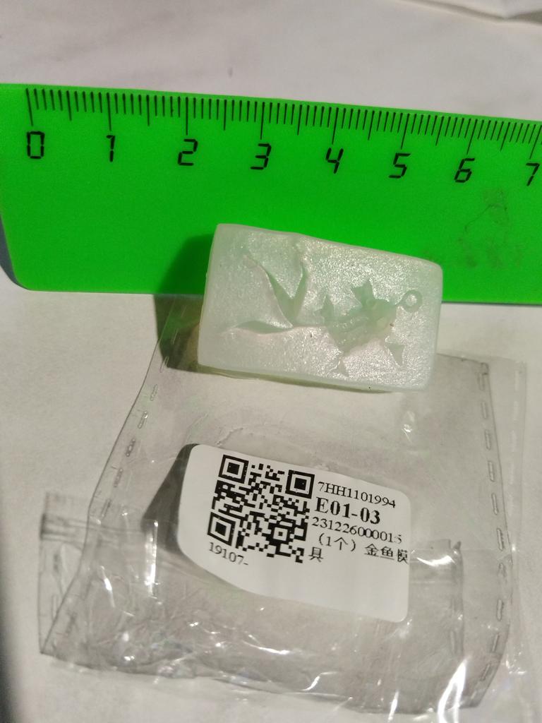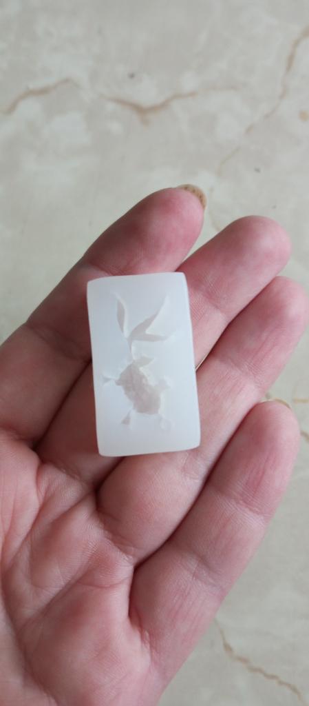 I was a little shocked when I saw the tiny little fish. I wanted small ones, but not quite so small. The whole shape is just under 3.5 cm in size, the fish is about 2.9 cm in size, just right for my project.