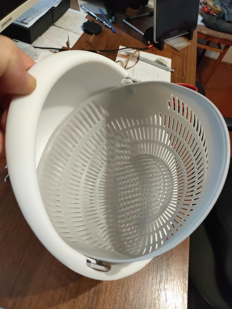 Unfortunately did not live up to expectations. The quality of the plastic is average, the inner bowl (colander) fits very tightly to the outer one, it turns with difficulty. In general, not very comfortable.