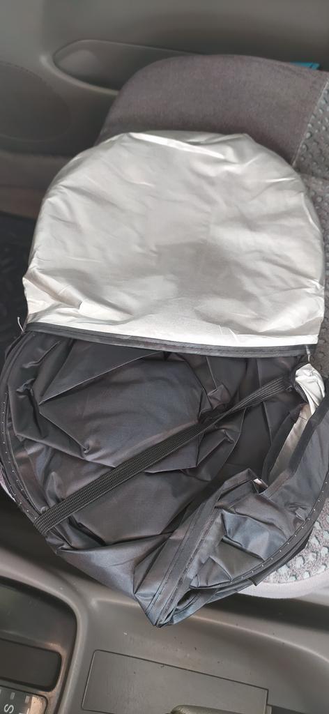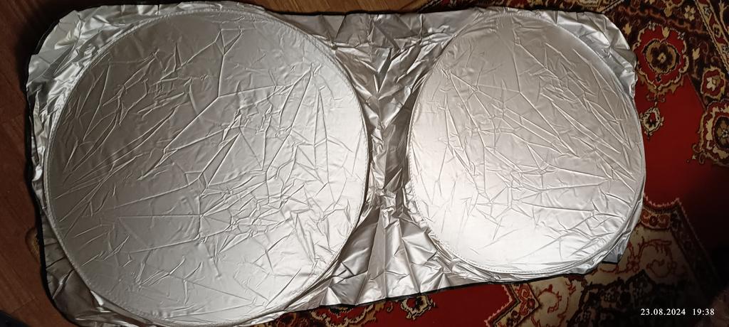 As in the picture. It has 2 layers, one clear and one black fixed on 2 folding rings (that is, you squeeze them and make them smaller) for the Opel Astra windshield, it is ok