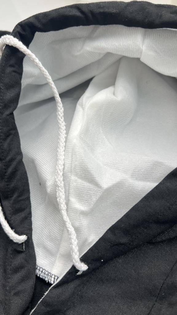The hoodie doesn´t fit the description. I´m really disappointed. Not 100% cotton, the hood wasn´t thickly lined with material...