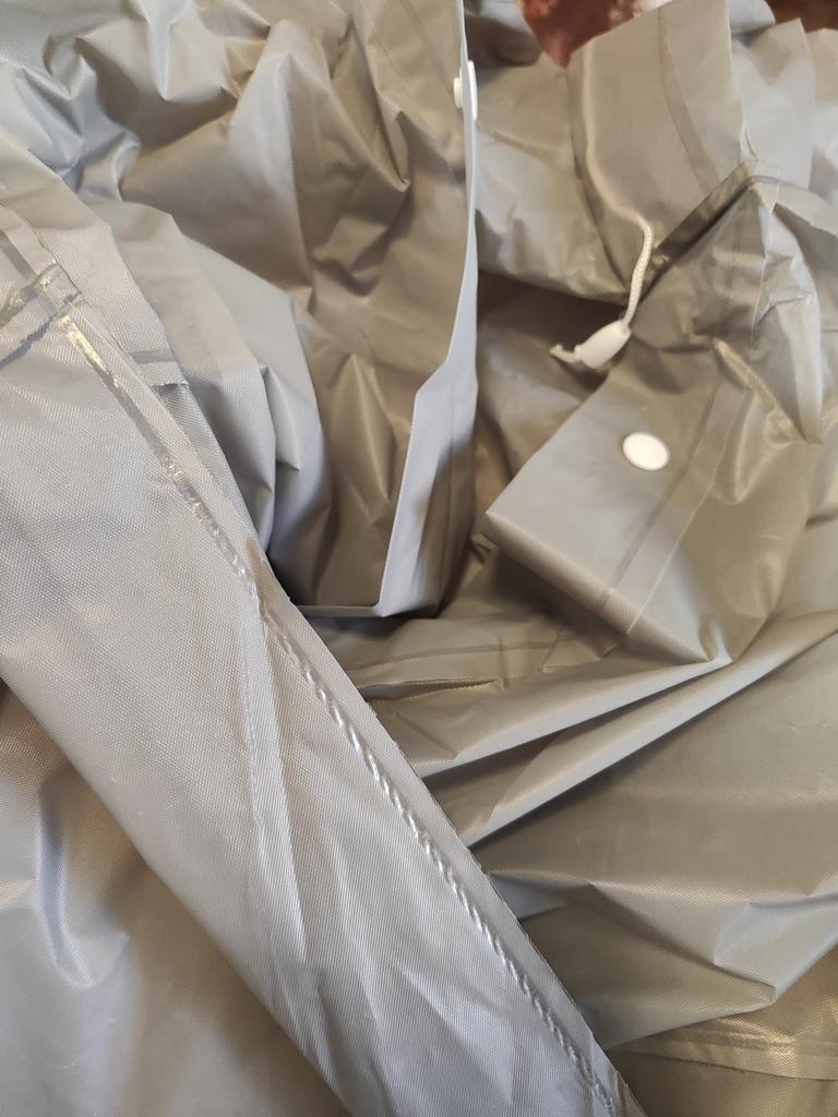 The raincoat is good. The seams are glued well. It fit size 52 perfectly. I recommend it.