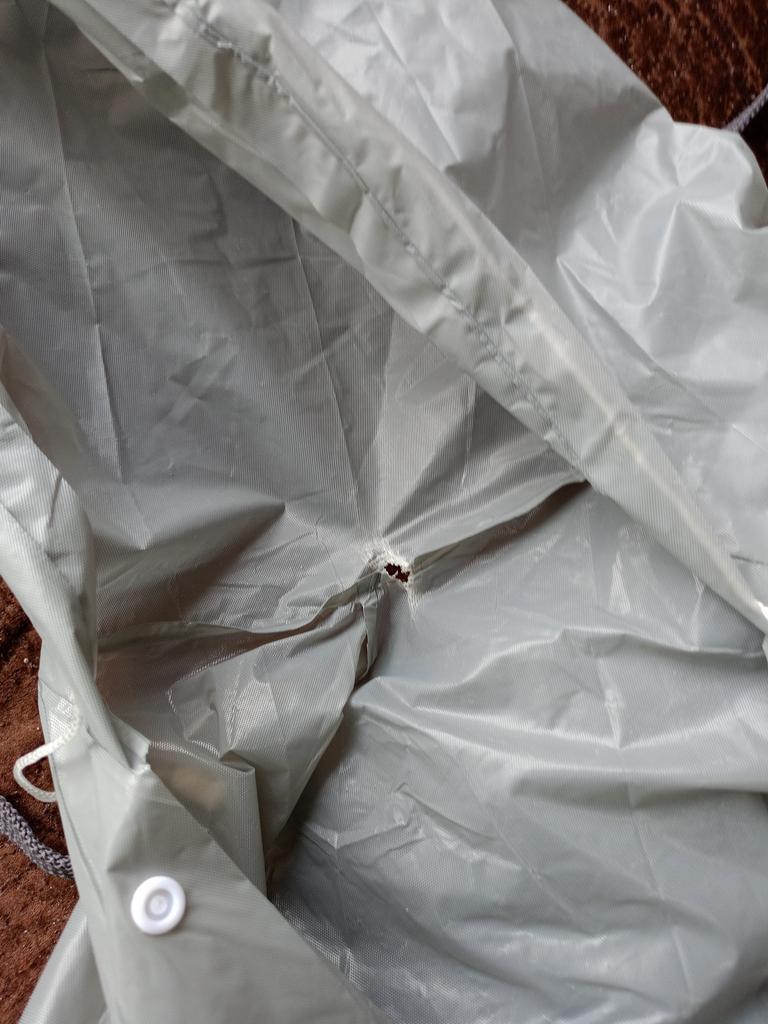 The raincoat is really big, it will cover you with a backpack or bag. But the buttons had to be opened very carefully even during the fitting, they tear out of the raincoat.