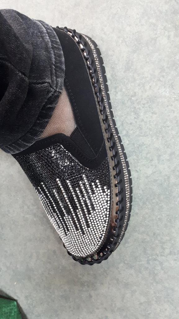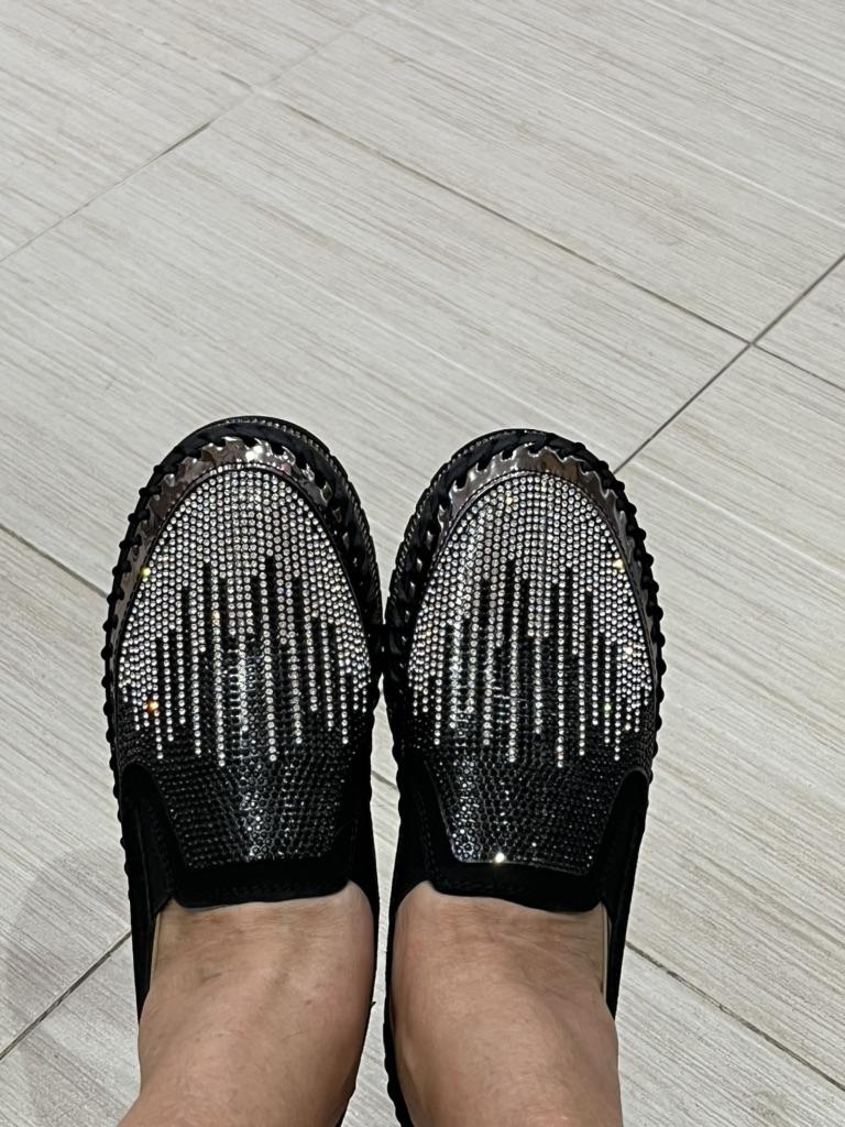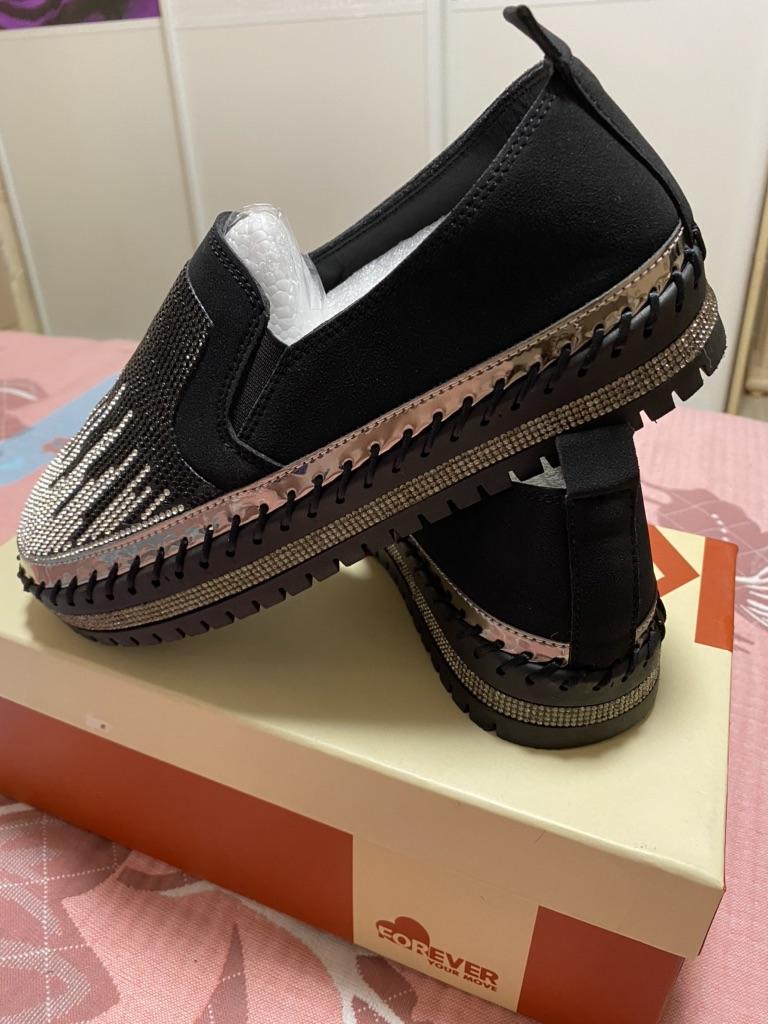 Women Glitter Crystal Loafers Fashion Platform Casual Shoes Slip On Shoes