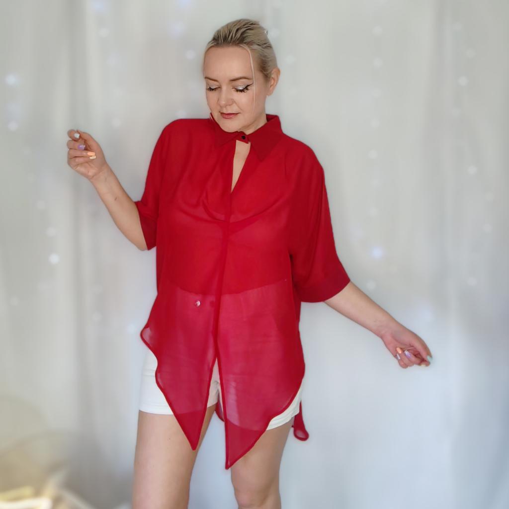 Silk blouse of an interesting style, the fabric is slightly see-through. I add: the fabric is very see-through, you need to wear a top under it