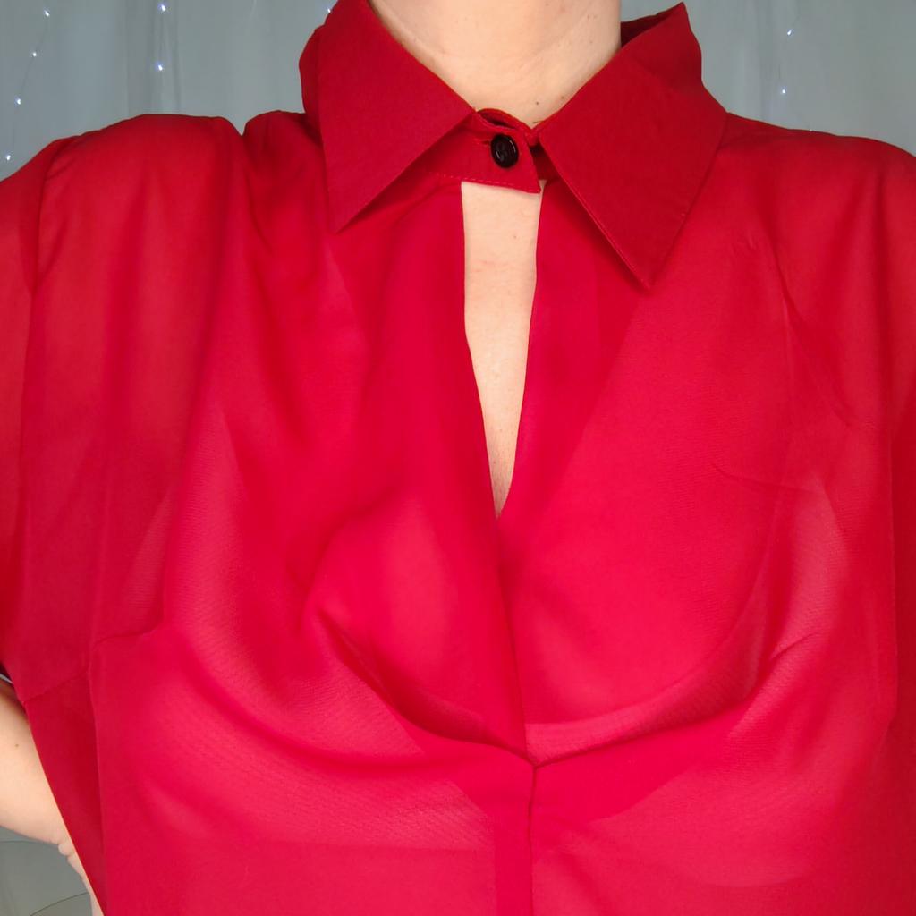 Beautiful French blouse made of chiffon. Free style, just like I wanted. Translucent. Excellent product. Thank you.