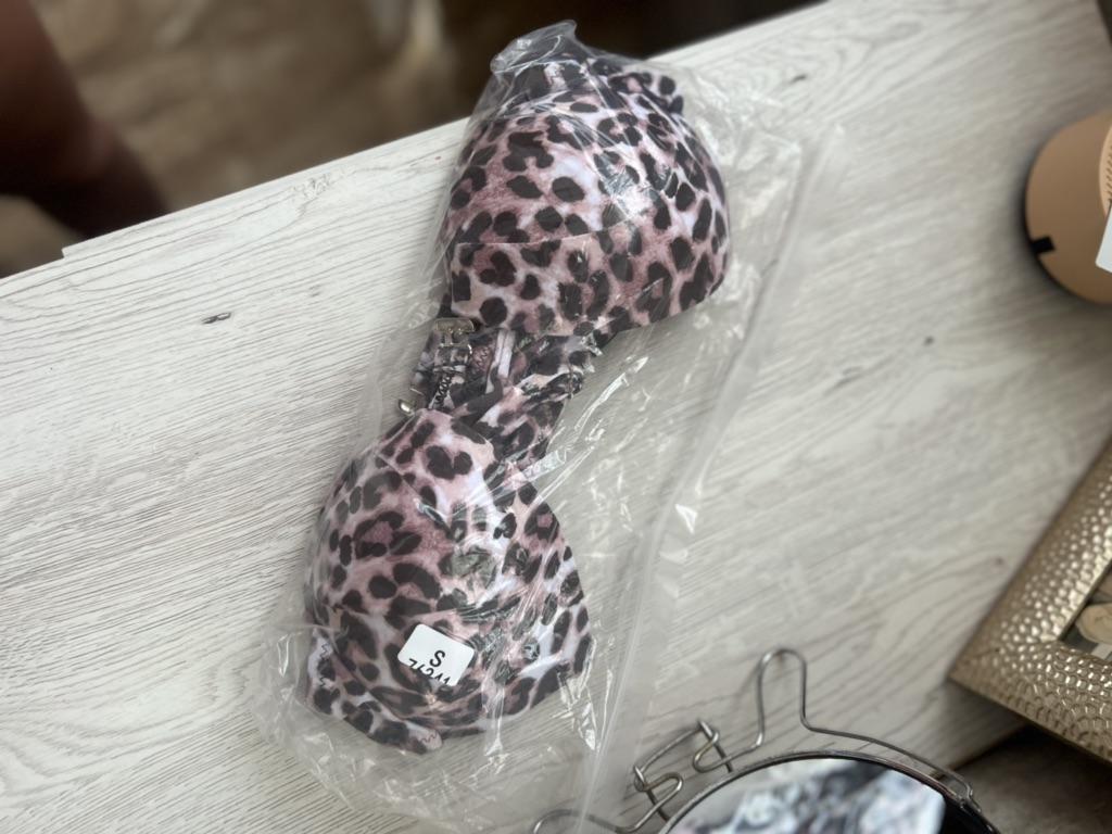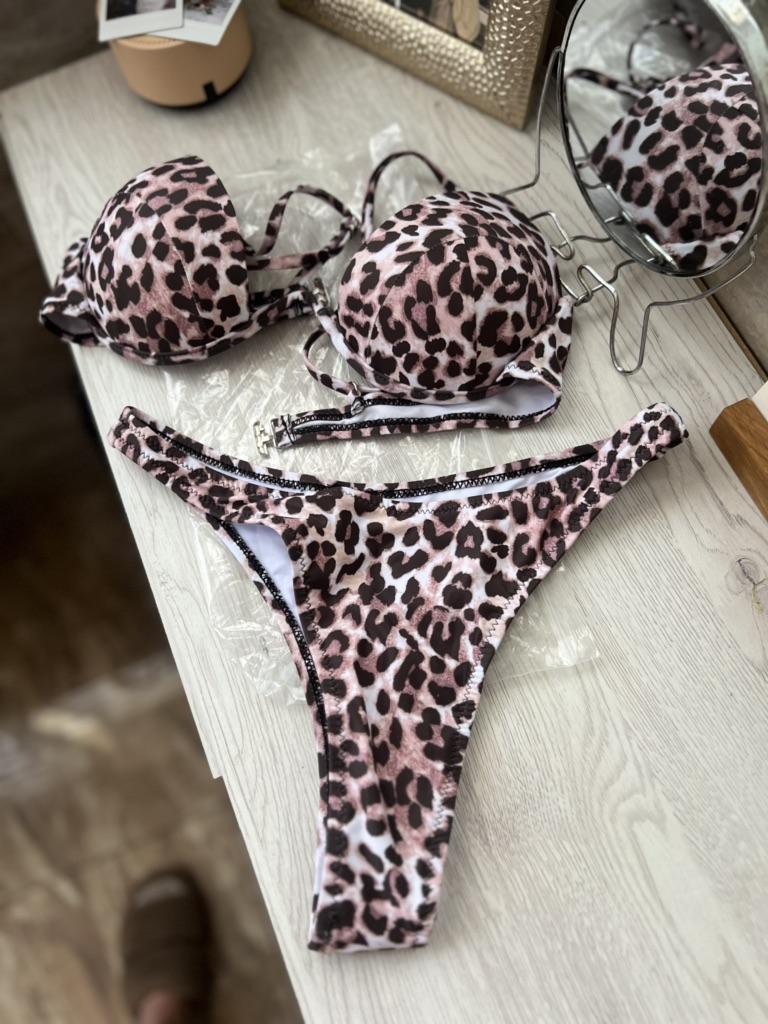 Size M fits 90-69-95. I have this leopard color one in size L, it's a little too big for me. It's packed. I can send it across Ukraine.. M differs from L in the depth of the bodice cup and the volume of the trunks in the waist area. The volume under the chest (75-80 cm), the width of the cup placement and the height of the trunks are the same in both sizes.
