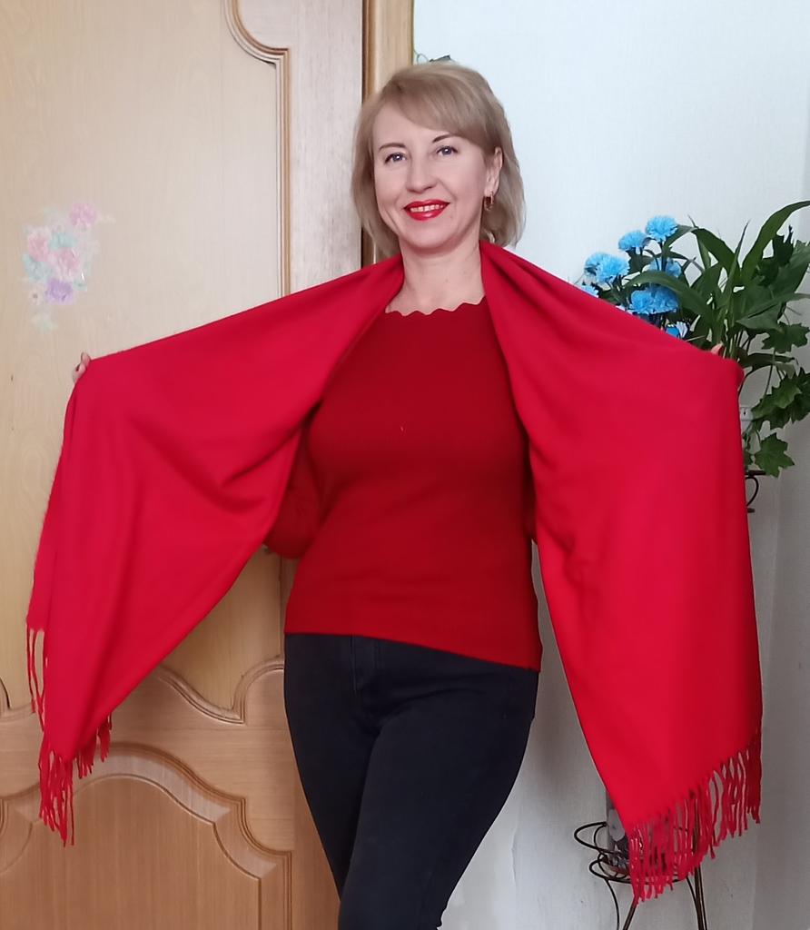 The scarf is very beautiful, pleasant to the touch. The color is as in the photo. Everything is normal