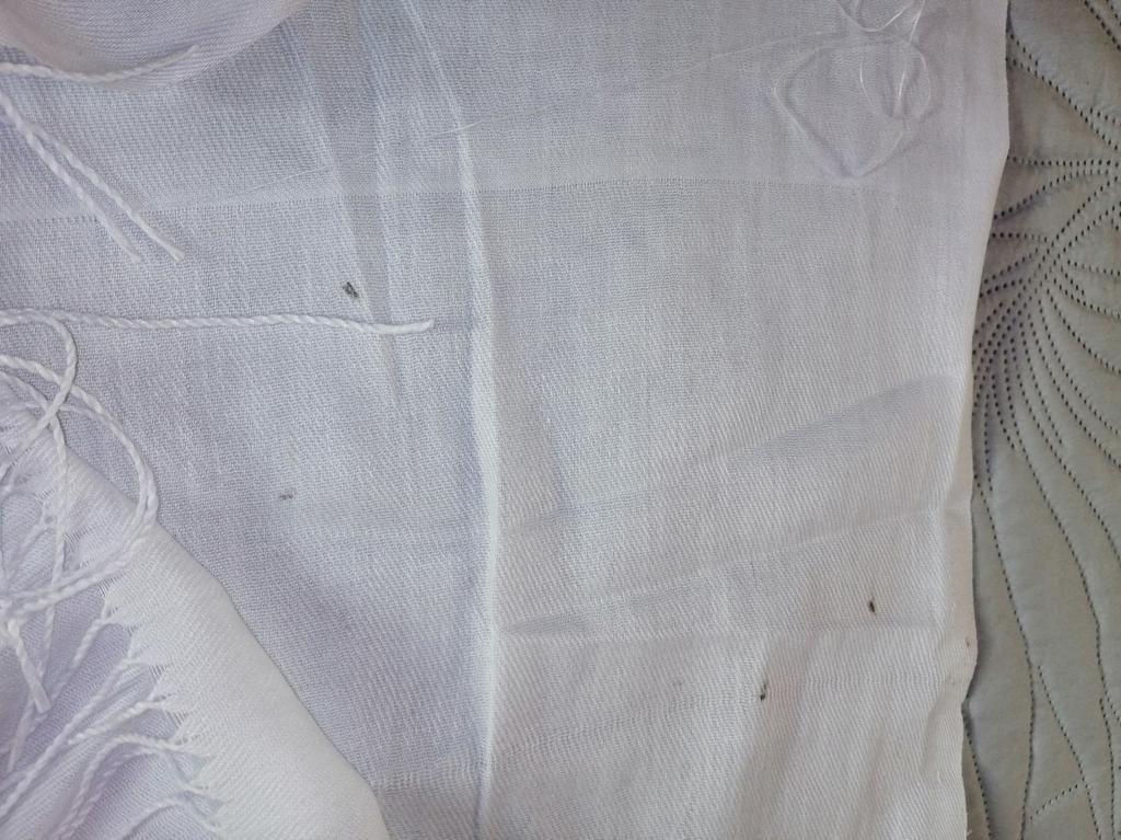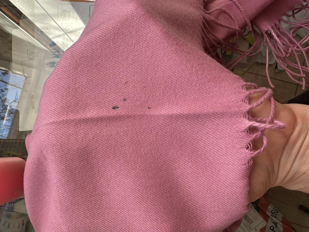 The scarf is dirty, the thread is pulled out in the center. All in spots. The quality is mediocre. Washed off. Nice. But... guys, be careful.