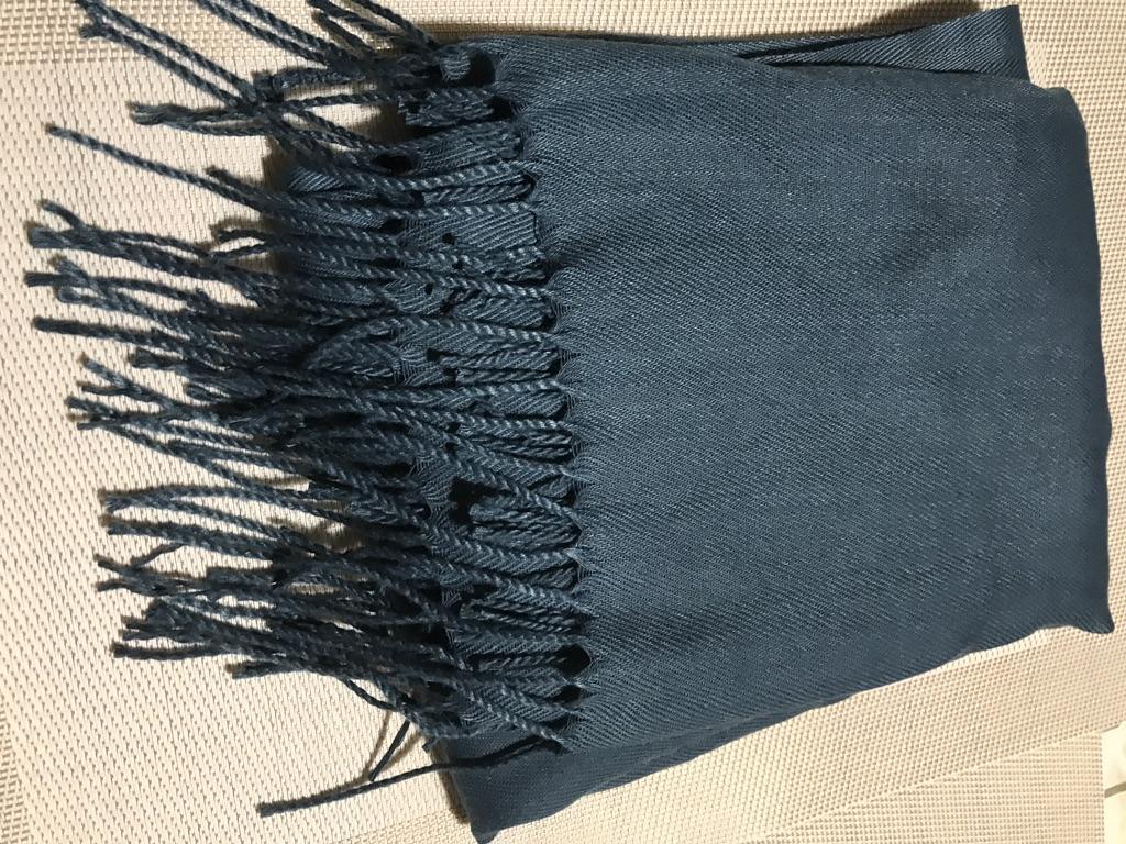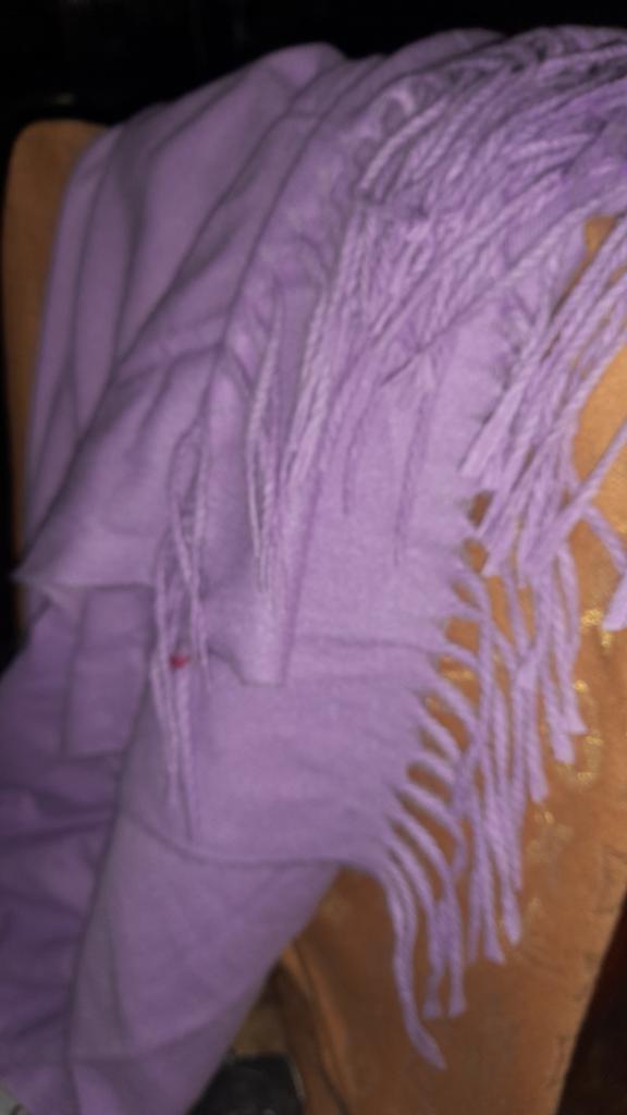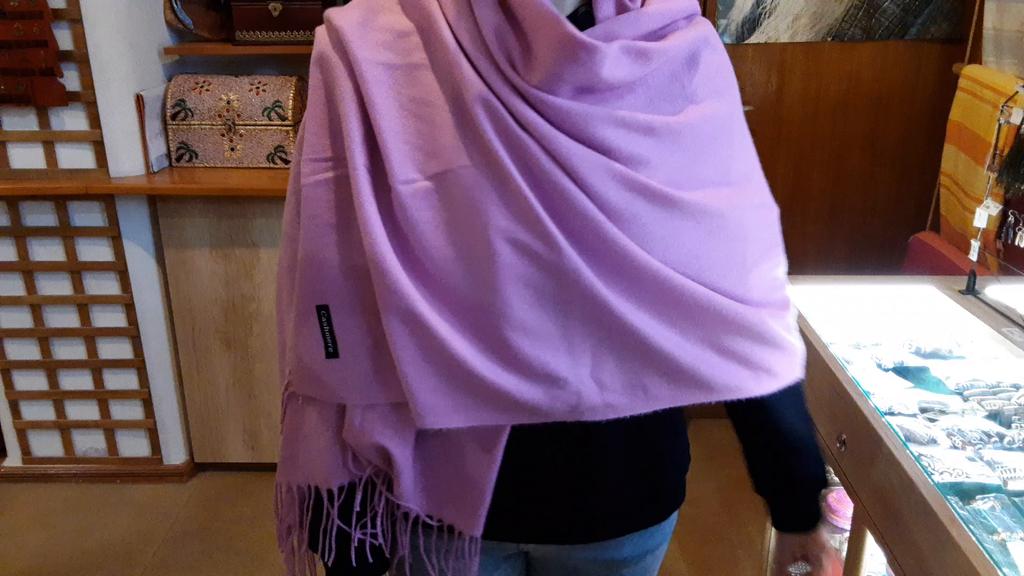 The purple cashmere scarf is very beautiful. The material feels great on the skin. Size and workmanship are good. The color looks very elegant. I can only recommend!