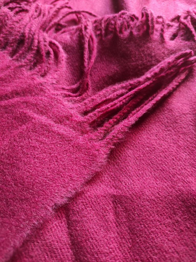 Scarf like a scarf. I enclose the structure of the fabric in the photo. The color does not quite match the photo of the store, but it is not at all the same as in my photo. More like burgundy + cherry.