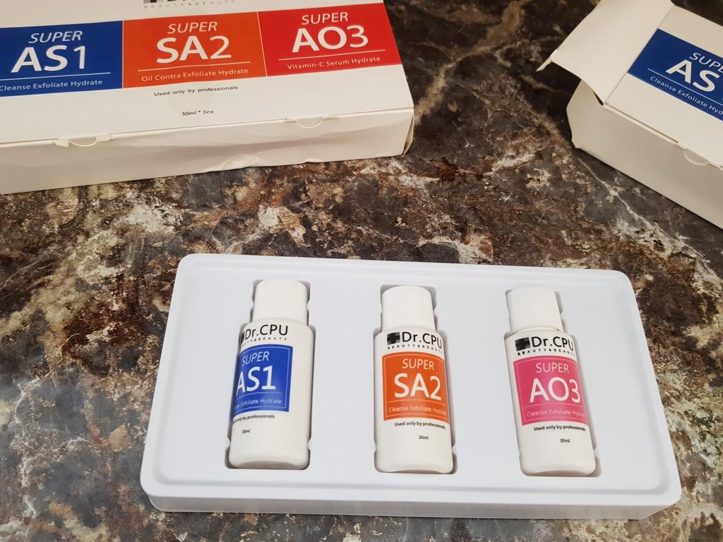 3-piece skin care set 👍👍❗️ Delivery time: 🚚🚛✈️✈️✈️15 days in Italy. Delivery: A 3-piece skin care set is included in the delivery The set includes: Super AS1: The main ingredients of Super AS1 are lactic acid, which promotes collagen regeneration. It gently removes impurities AS1 stimulates the formation of new skin cells through gentle peeling and repairs the old skin structure. Super SA2: The main ingredient of Super SA2 is salicylic acid. Thanks to the intensive action of salicylic acid on oily skin, it prevents acne. It also contains natural moisturizing ingredients to soothe the skin. Super A03: The main ingredients of Super AO3 are a glycerin solution, soy extract, green tea extract and cypress leaf extract. These penetrate deep into the skin, effectively promoting regeneration. Dr. CPU Super AO3 solution prevents dehydration. Dr. CPU Hydrafacial Serum 30 ml concentrated solutions are suitable for dermabrasion devices and Hydra Facial. For all skin types. 🔝 Summary✅️: skin care set . 🙏🌞 Thank you joom and the seller 😘😘🙏 5 stars 🌟 🌟 🌟 🌟 🌟 🌟