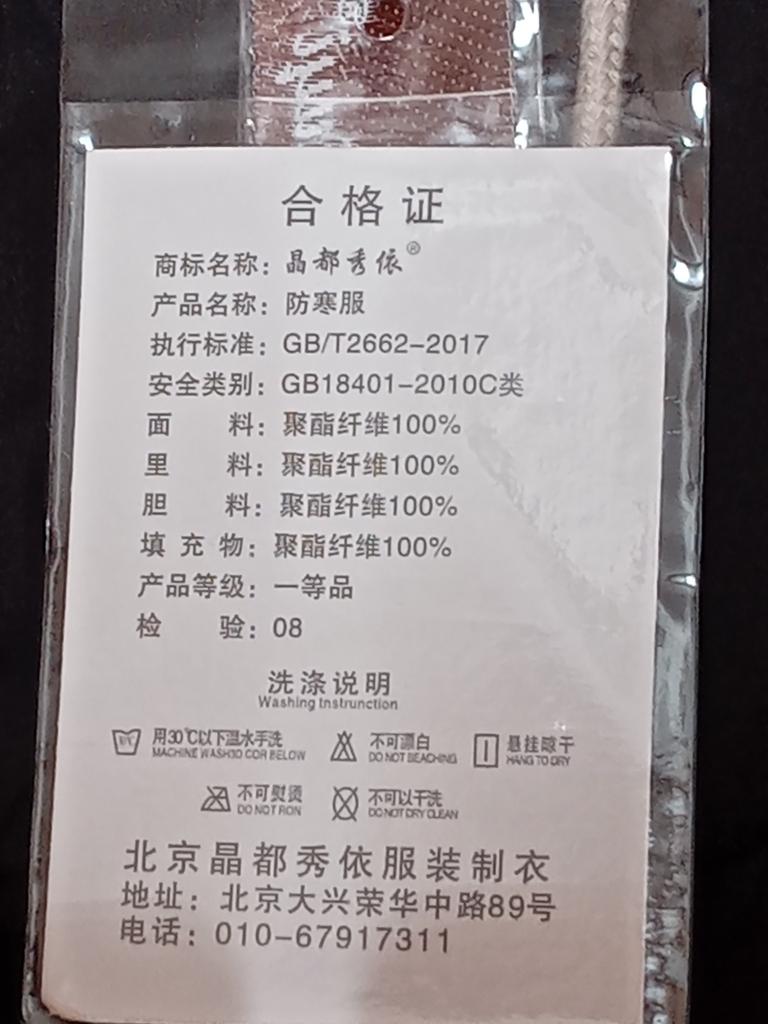 Aren't you ashamed to send such a product?! It is made of thin cotton fabric, the insulation inside is bunched up at the bottom of the jacket. The jacket is see-through. DO NOT WASTE MONEY ON THIS SHIT.