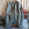 Johnature Women Winter Wide Leg Pants Cotton Linen Warm Trouser Solid Color Elastic Waist Pockets Vintage Female Pants