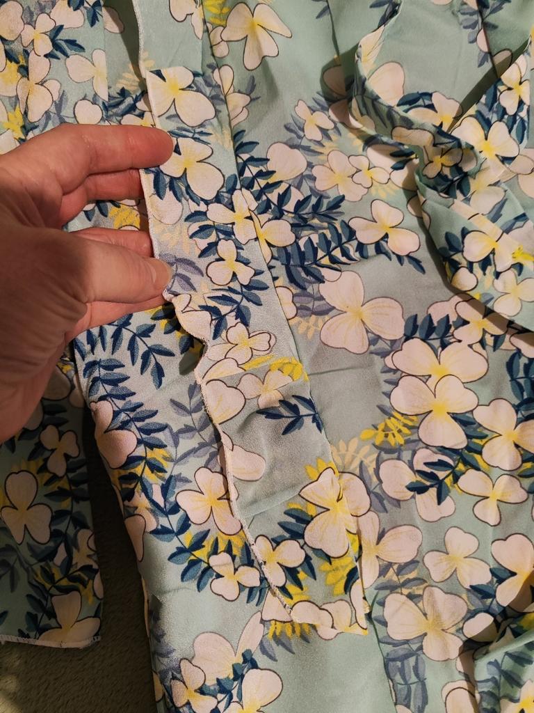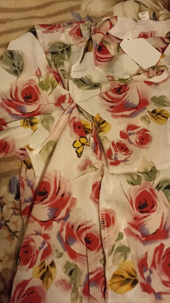 The outside of the blouse looks good, when I tried it on I didn’t notice it right away, when I started ironing I noticed a hole in the shoulder seam and the stitching on the edging of the collar-tie was crooked. The quality of tailoring leaves much to be desired.