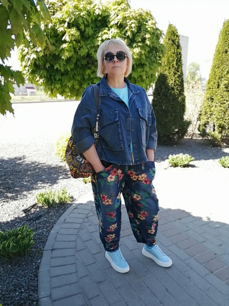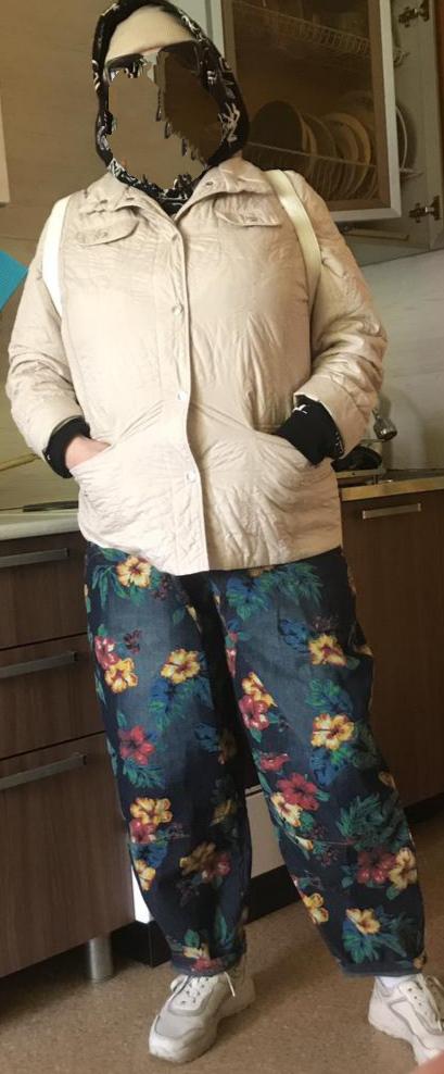 Very beautiful and bright jeans. Can be combined with bright sweaters and jackets due to the print, which includes: yellow, orange, green, red. I took it according to the size chart - everything fits.