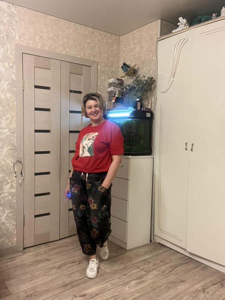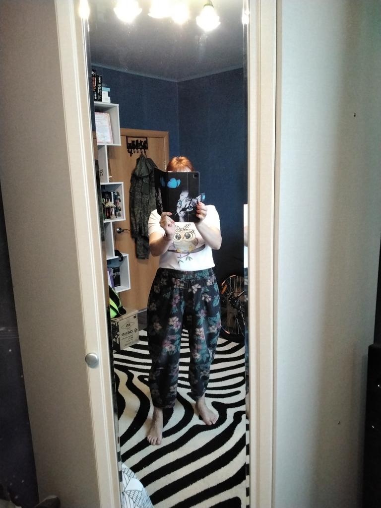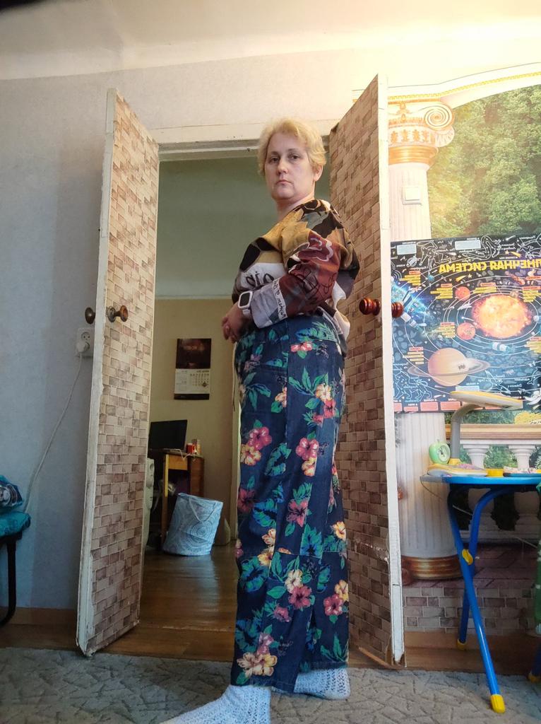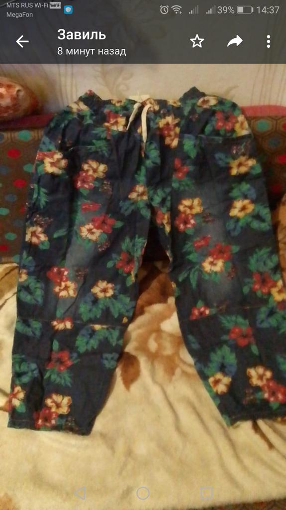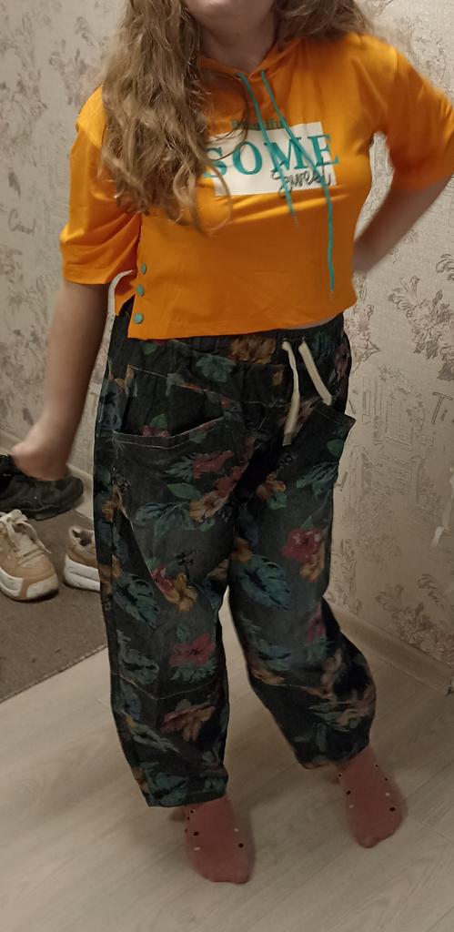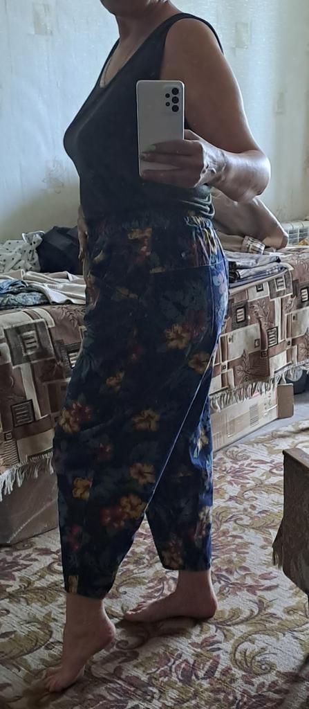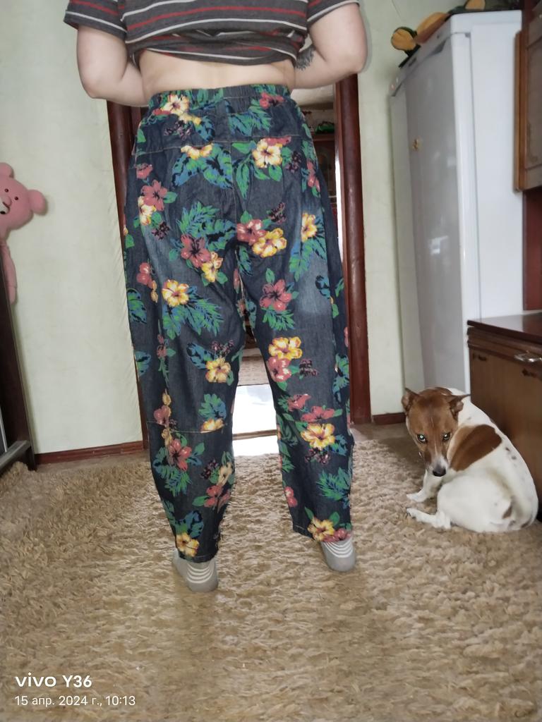 Well, so much has already been written about the pants 😊 Cool. Unusual. Comfortable. My parameters: waist 86-88 cm. Hips 111-112 cm. I took XL so as not to stretch the waist. It would be possible to easily do L and even M. But then the elastic at the waist would quickly fray since it is not designed to fit 112 cm into it over and over again. Because of their cut, the jeans do not look big. Something like that. I wear it with pleasure.