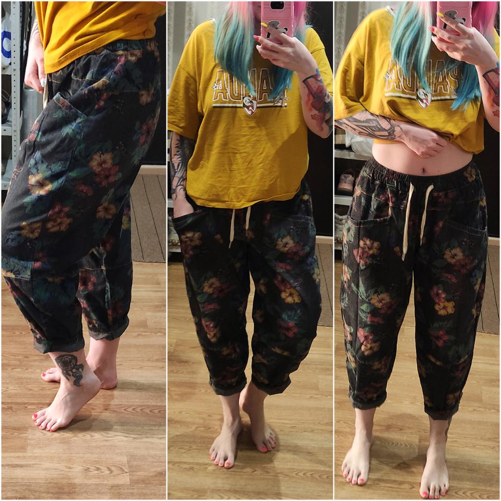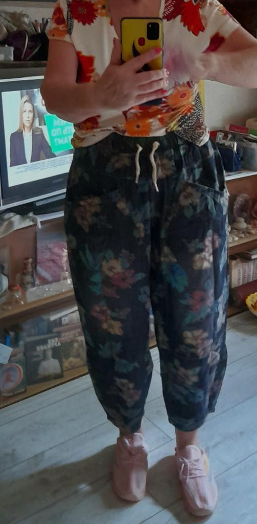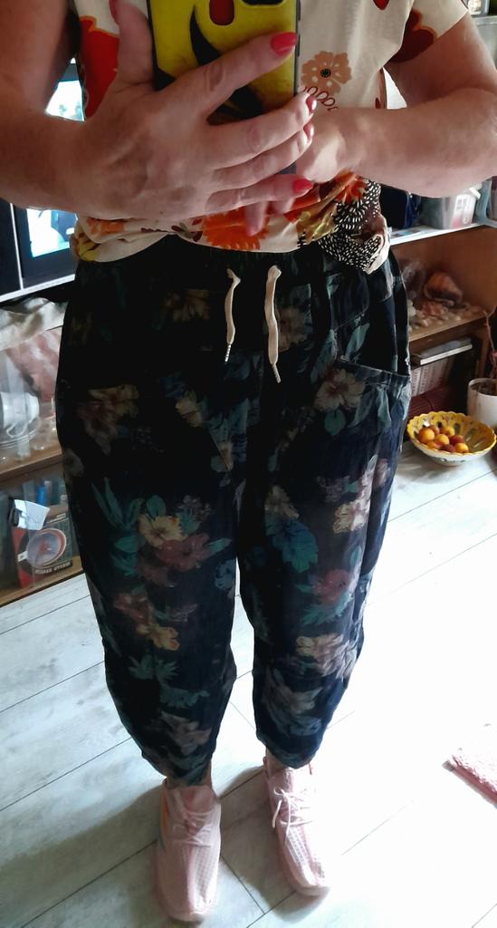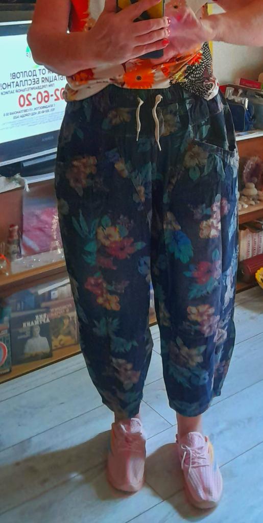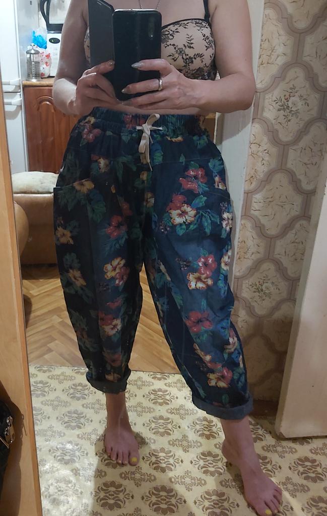 The trousers are excellent, beautiful, they were not long, but I hemmed them. After washing, the flowers are in place.👍⚘️🎉❤️I recommend.